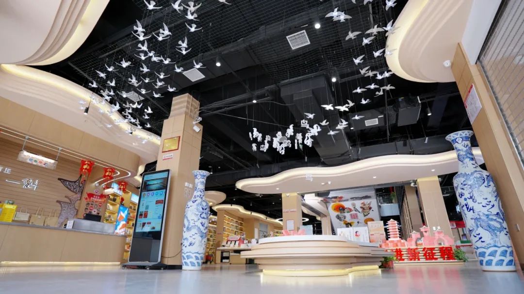 以“殷商文化”為核心的商丘市新華書店凱旋路店,營(yíng)業(yè)面積達(dá)3000平方米,店內(nèi)陳列覆蓋社科、文學(xué)、藝術(shù)、科技、生活、少兒、教育等圖書4萬余種、10萬余冊(cè),并設(shè)置了文化閱讀、多元文創(chuàng)、藝術(shù)展示、交流分享、AI自習(xí)室等多個(gè)專區(qū),是一個(gè)集文化學(xué)習(xí)、社交互動(dòng)、文藝展覽于一體的多功能文化閱讀空間。在空間表達(dá)上,凱旋路店深挖地域文化元素,特別是“玄鳥生商”的甲骨文飛鳥造型環(huán)頂一樓整個(gè)大廳,藝術(shù)區(qū)的“梁園八景”古樸燈箱與文房四寶交相呼應(yīng)營(yíng)造典雅文化氛圍,李白《梁園吟》的石壁雕刻讓很多前來的家長(zhǎng)和孩子駐足欣賞、輕輕吟誦,以及“應(yīng)天文化講堂”活動(dòng)專區(qū)舉辦的“朗讀者沙龍”“我是經(jīng)典傳誦人”等系列豐富閱讀活動(dòng),為讀者提供高品質(zhì)的文化體驗(yàn)。此外,凱旋路店積極探索“文化+科技”的創(chuàng)新融合,在三樓和負(fù)一樓打造的數(shù)智AI自習(xí)室和科普研學(xué)實(shí)踐基地即將落地,為讀者帶來智能化、趣味性的全新體驗(yàn)。