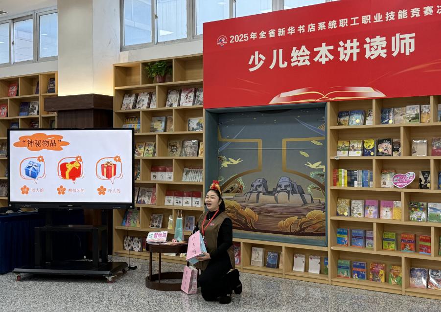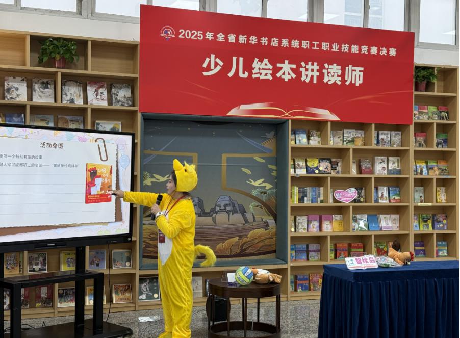 本次大賽堅(jiān)持“圍繞中心、注重實(shí)戰(zhàn)、服務(wù)發(fā)展”的辦賽理念,緊扣圖書(shū)發(fā)行、閱讀服務(wù)、創(chuàng)新業(yè)務(wù)發(fā)展等核心領(lǐng)域,設(shè)置圖書(shū)造型及融合美陳、直播薦書(shū)、門(mén)店研學(xué)導(dǎo)師和少兒繪本講讀師四個(gè)競(jìng)賽項(xiàng)目。賽事設(shè)置上,既有對(duì)傳統(tǒng)業(yè)務(wù)技能的鞏固提升,也有對(duì)新技能、新模式的探索實(shí)踐;賽事規(guī)則上,既考驗(yàn)基礎(chǔ)功底,更注重考察創(chuàng)新能力。 決賽現(xiàn)場(chǎng)氛圍緊張熱烈,各項(xiàng)目角逐亮點(diǎn)紛呈。圖書(shū)造型及融合美陳項(xiàng)目賽場(chǎng),選手們巧手翻飛,將一本本圖書(shū)打造成寓意深刻的藝術(shù)造型,讓書(shū)香與美學(xué)完美交融;直播薦書(shū)項(xiàng)目賽場(chǎng),選手們化身專(zhuān)業(yè)主播,以生動(dòng)講解、互動(dòng)演示精準(zhǔn)傳遞圖書(shū)核心價(jià)值,展現(xiàn)出新時(shí)代圖書(shū)發(fā)行的創(chuàng)新表達(dá);門(mén)店研學(xué)導(dǎo)師項(xiàng)目賽場(chǎng),選手們結(jié)合本土文化特色,將文學(xué)、歷史、科學(xué)等多領(lǐng)域知識(shí)融入研學(xué)課程,把“五育融合”具象為可感知、可參與的實(shí)踐體驗(yàn);少兒繪本講讀師項(xiàng)目賽場(chǎng),選手們化身“故事魔法師”,以精巧靈動(dòng)的設(shè)計(jì)、充滿(mǎn)童趣的互動(dòng),展現(xiàn)出少兒閱讀的精彩體驗(yàn)。比賽間隙,選手們相互交流經(jīng)驗(yàn)、切磋技藝,在比拼中找差距、在交流中促提升,充分彰顯了“比學(xué)趕超”的良好氛圍。